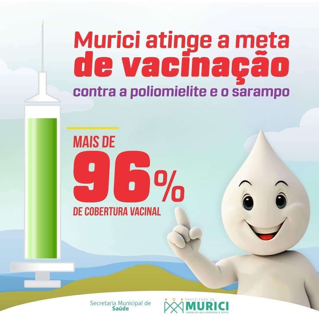 Com Assessoria O município de Murici atingiu a meta da campanha de vacinação contra a poliomielite e o sarampo com mais de 9⃣6️⃣% do público alvo imunizado. Até o momento já foram aplicadas 4 mil doses das vacinas em crianças de 1 ano a menores de 5 anos no município. Desde o