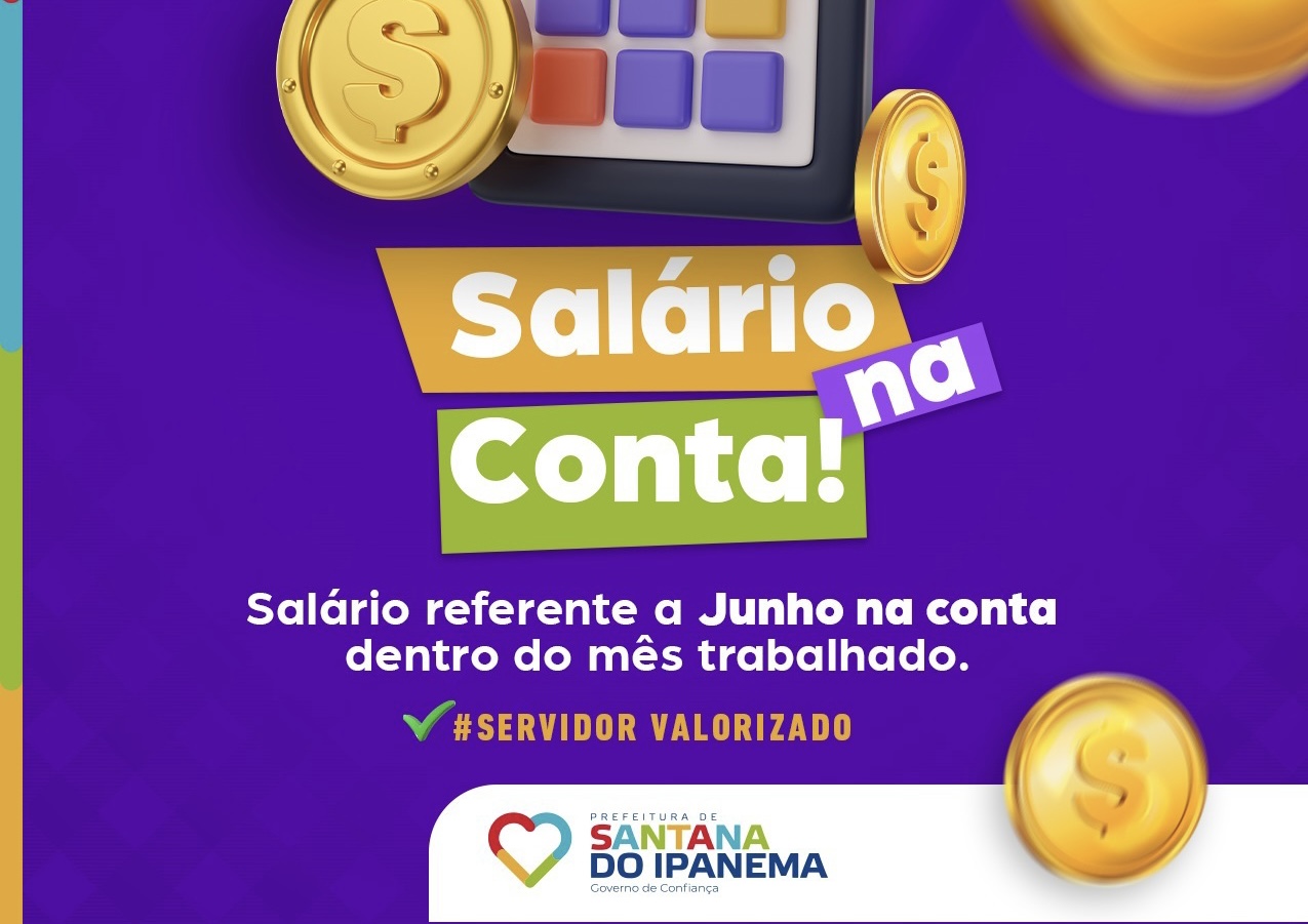 A Prefeitura de Santana do Ipanema, por meio da Secretaria de Finanças, liberou o pagamento do funcionalismo público referente ao mês de junho, dentro do mês trabalhado. O dinheiro começou a ser creditado nas contas dos funcionários nesta segunda-feira (26). Pagar em dia e um compromisso honrado mês a mês pelo
