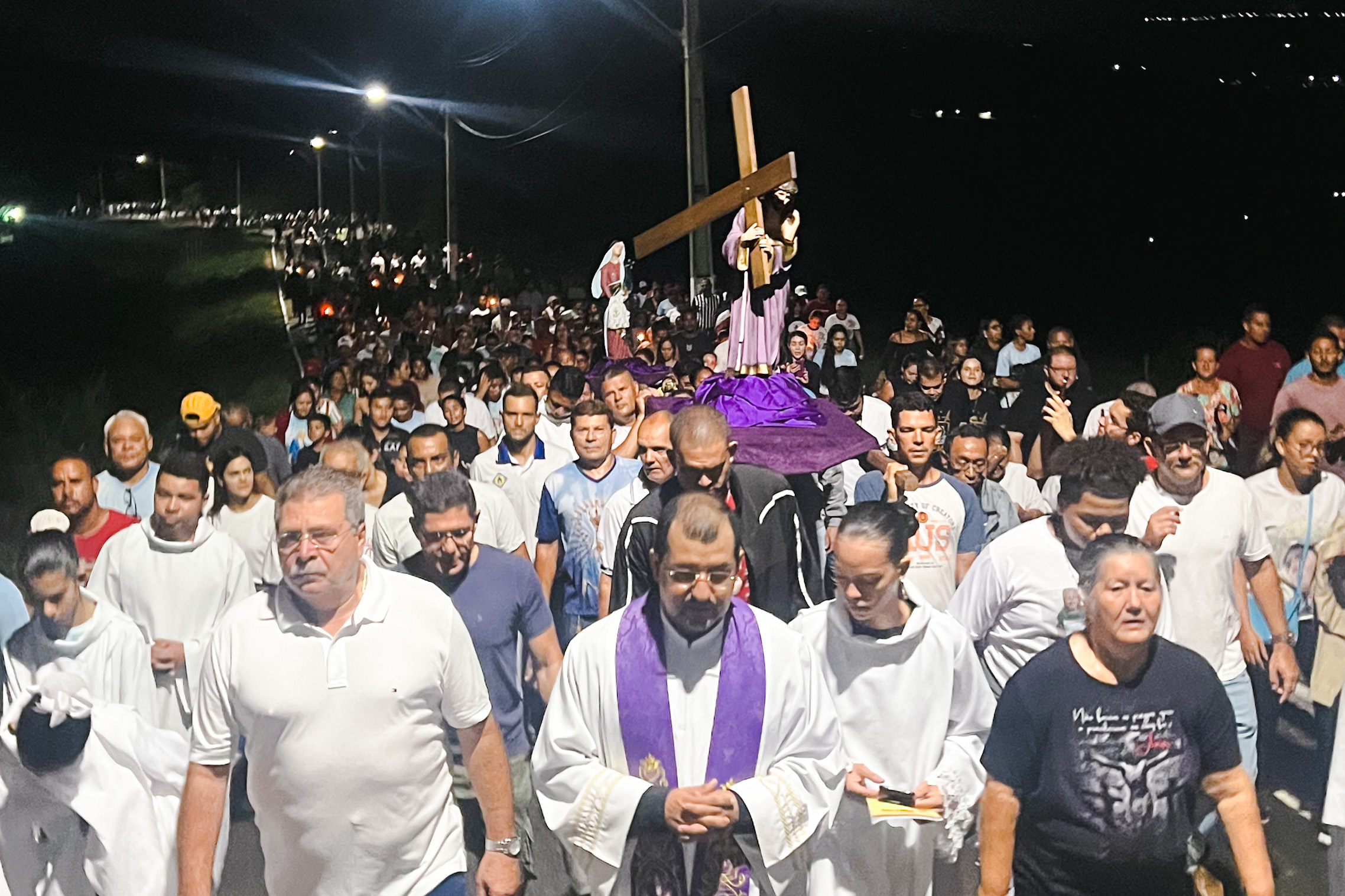 Seguindo a tradição de 139 anos, milhares de fiéis seguiram rumo ao Alto do Cruzeiro na madrugada dessa Sexta-feira da Paixão, relembrando a Via Sacra com a trajetória de vida, morte e ressurreição de Jesus Cristo. Segundo a lenda, a primeira procissão foi em 1884, quando todo o povo foi curado