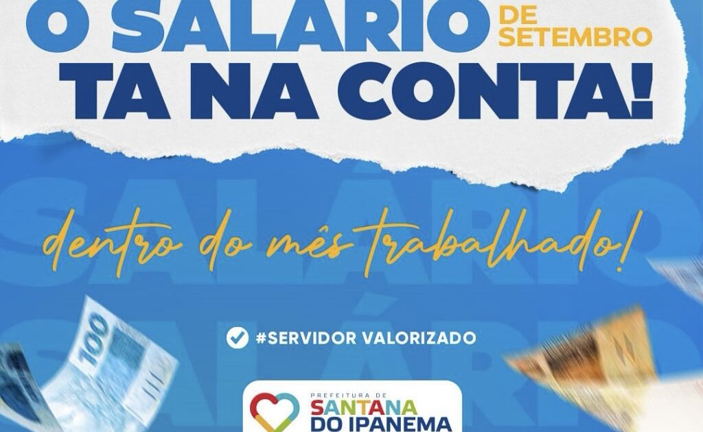 A Prefeitura de Santana do Ipanema, por meio da Secretaria de Finanças, liberou o pagamento do funcionalismo público referente ao mês de setembro, de forma antecipada e dentro do mês trabalhado. O dinheiro começou a ser creditado nas contas dos funcionários nesta terça-feira (26).
