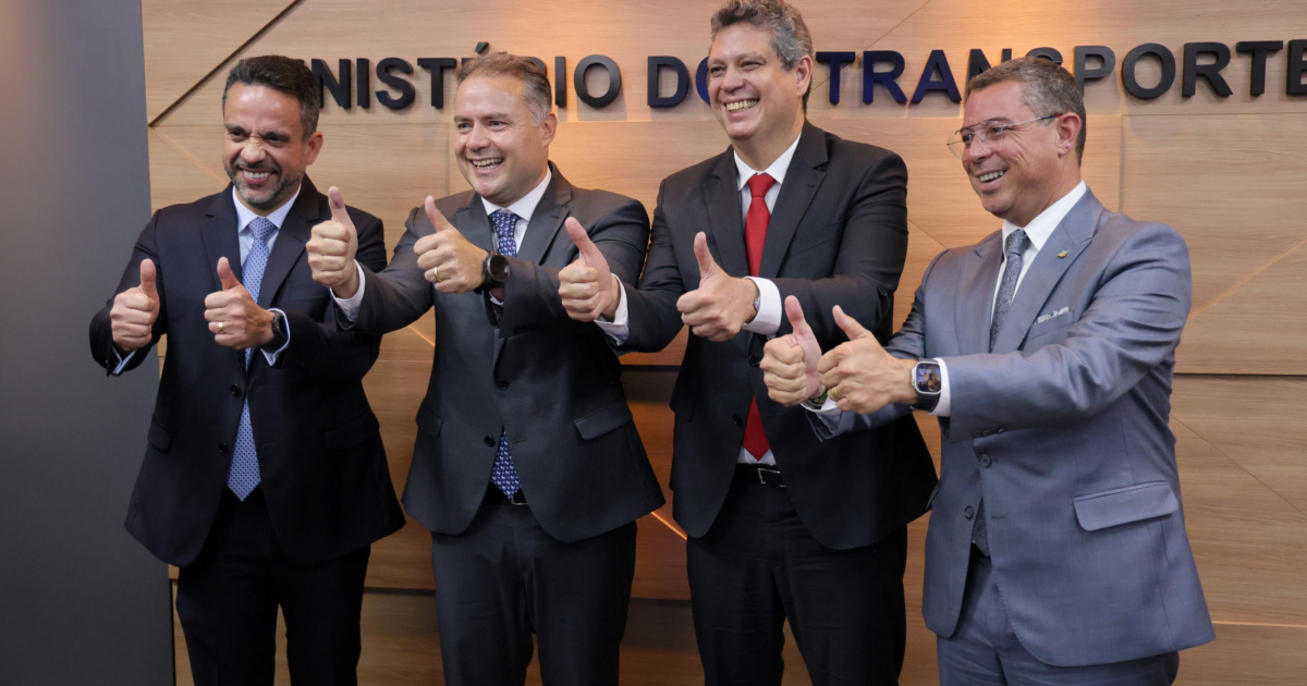O governador Paulo Dantas assinou nesta terça-feira (3) o edital de licitação para a construção da ponte rodoviária entre Penedo (AL) e Neópolis (SE), na sede do Ministério dos Transportes, em Brasília. O documento também foi assinado pelos ministros dos Transportes, Renan Filho, da Secretaria Geral da Presidência, Márcio Macedo, e pelo governador de Sergipe, Fábio Mitidieri.