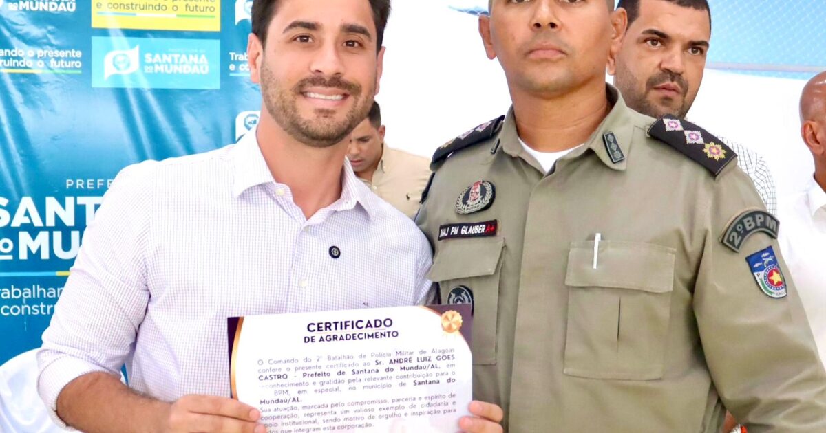 Nesta quarta-feira (5), o comandante do 2º BPM, Major Glauber Patrick, esteve no município para apresentar os dados e o plano de ação que vem sendo executado em Mundaú e na região. Na ocasião, o prefeito André Castro, o vice-prefeito Nego das Brenhas, o secretário de Governo, Arthur Freitas, a secretária de Assistência Social, Katherine Farias e o chefe de gabinete, Dymas Vitorino, receberam um certificado de agradecimento pela contribuição às atividades da segurança pública, entre elas, a criação da Sala Lilás – destinada a acolher e orientar mulheres vítimas de qualquer tipo de violência.