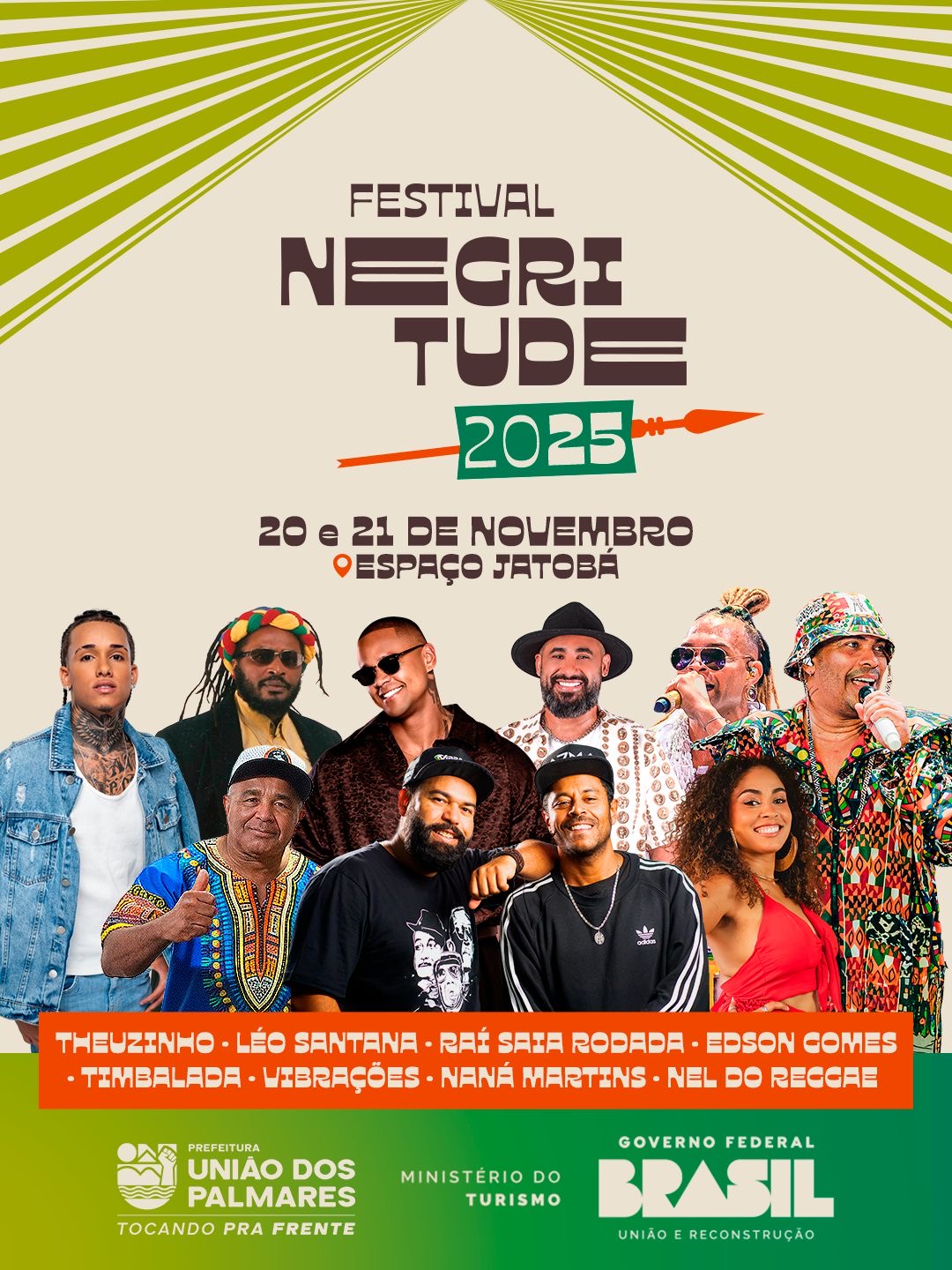 A cidade de União dos Palmares se prepara para viver duas noites inesquecíveis de música, cultura e celebração da ancestralidade afro-brasileira. Nos dias 20 e 21 de novembro, o Espaço Jatobá será palco do Festival Negritude, uma realização da Prefeitura de União dos Palmares, em parceria com o Ministério do Turismo e o Governo Federal.