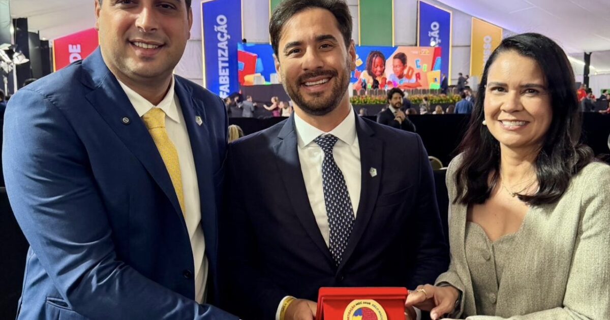 Em uma solenidade realizada nesta segunda-feira (23), conduzida pelo presidente Lula e o Ministro da Educação, Camilo Santana na Esplanada dos Ministérios, em Brasília, o prefeito André Castro, o secretário de gestão, Arthur Freitas e a secretária de educação, Daniele Marcia, receberam pelo segundo ano consecutivo, o Selo Ouro no Compromisso Nacional Criança Alfabetizada – uma iniciativa que certifica as gestões que implementam práticas eficazes e promovem ações de excelência voltadas à alfabetização.