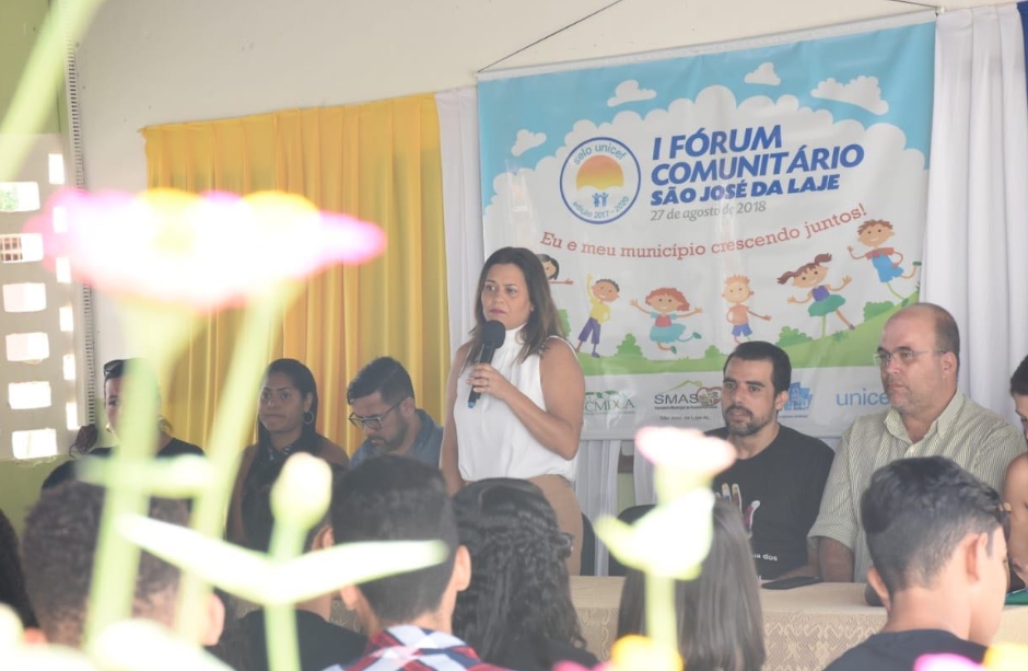 Nesta segunda-feira, 28, o município de São José da Laje, realizou em parceria com o Conselho Municipal dos Direitos da Criança e do Adolescente (CMDCA), o Núcleo de Cidadania dos Adolescentes (NUCA), a Coordenadoria Municipal de Juventude, e a comissão Intersetorial composta por representantes de todas as secretarias do município, o 1º Fórum Comunitário do Selo UNICEF Município Aprovado 2017/2020, no Pólo da UAB, Centro. O encontro contou com a presença de representantes das Secretarias Municipais da Saúde, Educação, Agricultura, Cultura, Turismo e Assistência Social, além do Conselho Tutelar, dezenas de alunos das escolas Benício Barbosa, Padre Teófanes, Emília Ferreiro, e membros da sociedade civil.