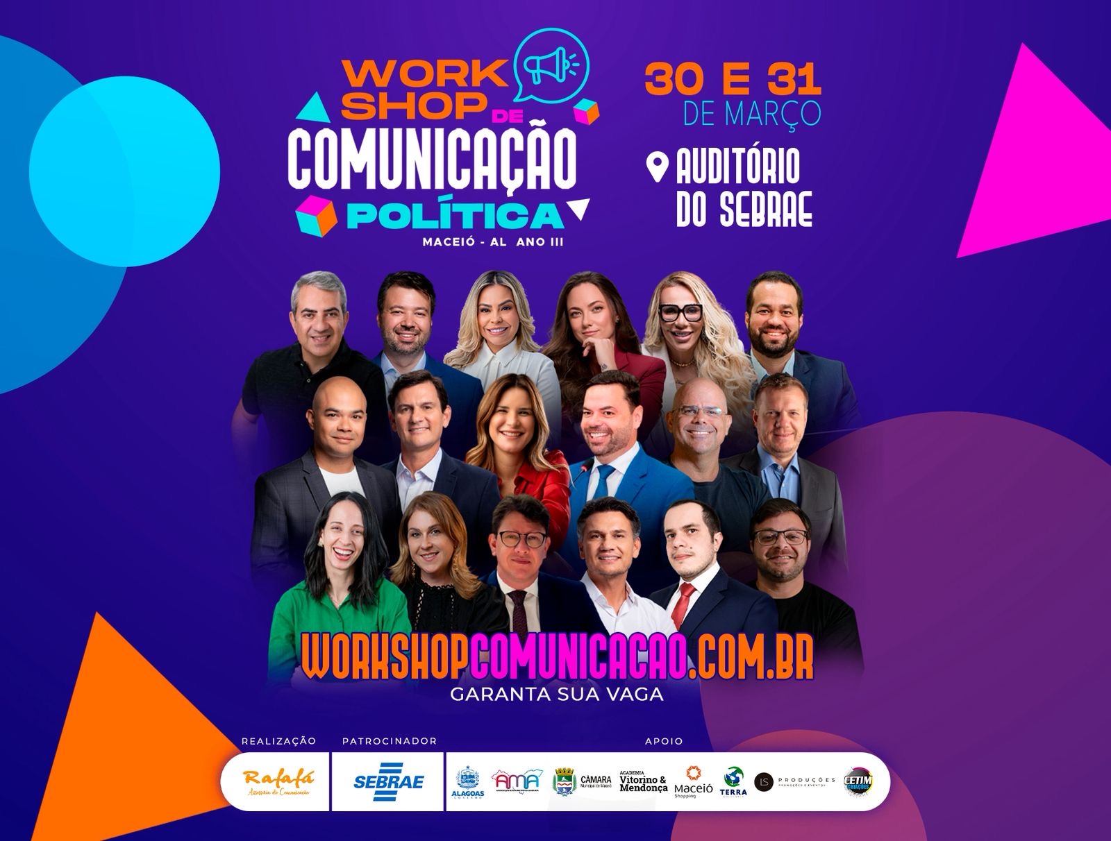 Em 2026, o cenário político brasileiro se prepara para mais um ano eleitoral. E, o sucesso de uma candidatura não depende apenas de propostas robustas e planos de ação, mas, também, de uma habilidade fundamental: a comunicação. Por isso, estar preparado faz toda a diferença. Nos dias 30 e 31 de março no Auditório do Sebrae, acontece a 3ª edição do Workshop de Comunicação Política; reunindo Marcelo Vitorino, Wilson Pedroso, Fabiana Vitorino, a prefeita de Marituba – PA, Patrícia Alencar, a secretária de Políticas Públicas e Bem-Estar Social da prefeitura de Belém/PA, Bruna Lorrane, Gustavo Moreno, Wendel Palhares e um grande elenco, os participantes se aprofundarão em conhecimento, se conectarão com novas experiências e transformarão ideias em ação para atuarem de forma estratégica e eficiente nas campanhas eleitorais deste ano.